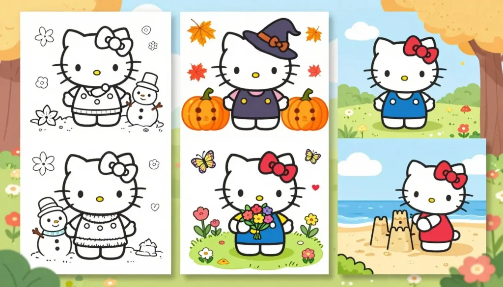 The versatility of Hello Kitty is showcased through its seasonal coloring sheets, making it a beloved character across various holidays and times of the year. Seasonal themes bring a fresh and exciting twist to the traditional Hello Kitty coloring experience.